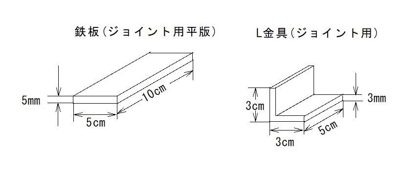 ( まずは、ジョイント用の鉄板、L金具を下図の様にカットして多数作ります。)