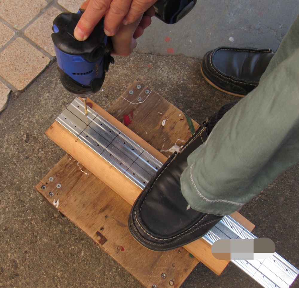 ( ルーバー取り付け金具作り方 ) ダブルバーを4cm程の長さにして、カット前にドリルで
