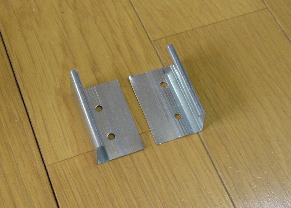カットしたダブルバーの中央で、金鋏みでカットしてルーバー取り付け金具を作ります。