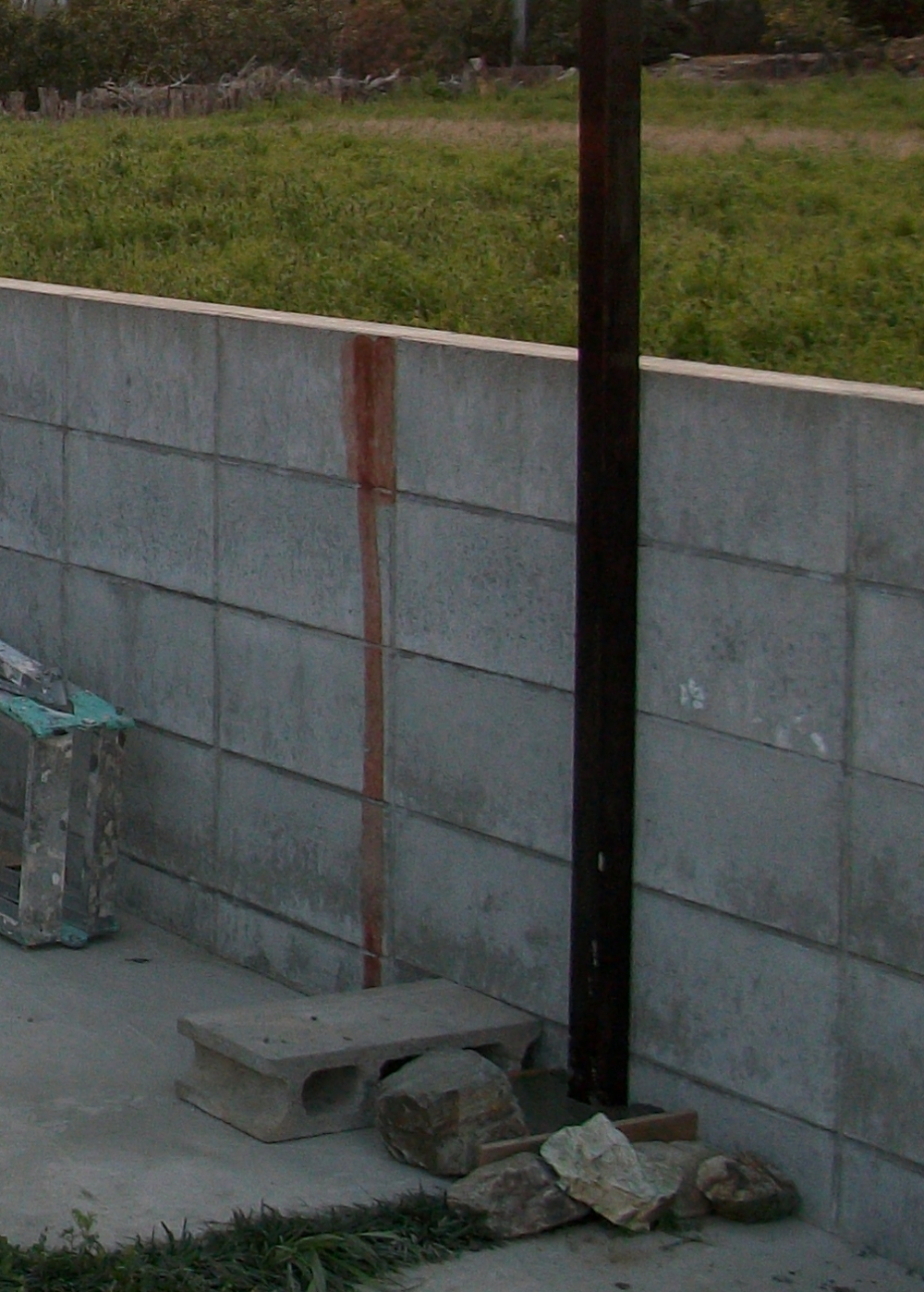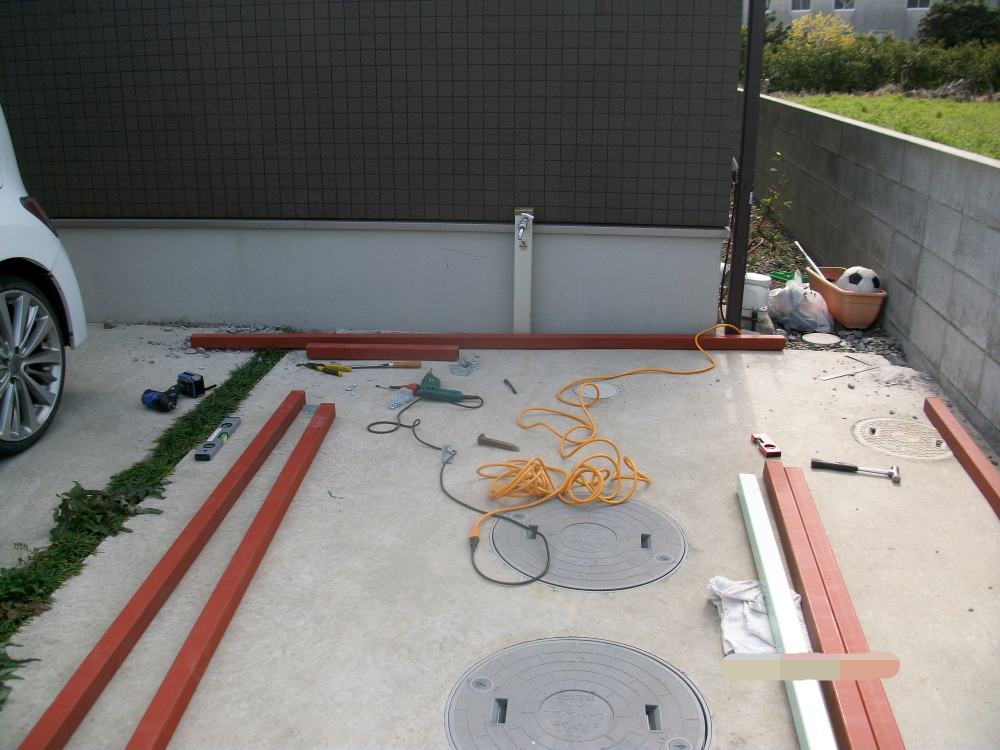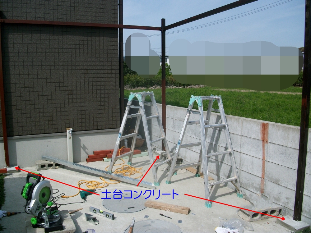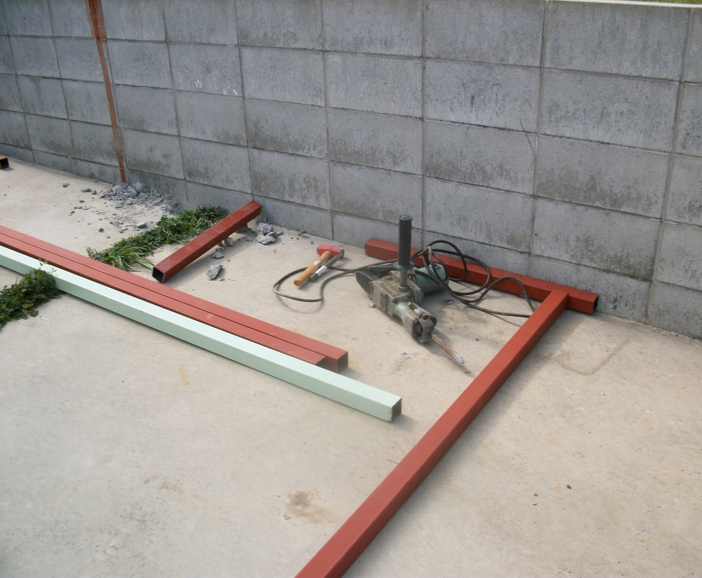 我流ではありますが、L金具を取り付けコンクリートに埋め込み、固めると