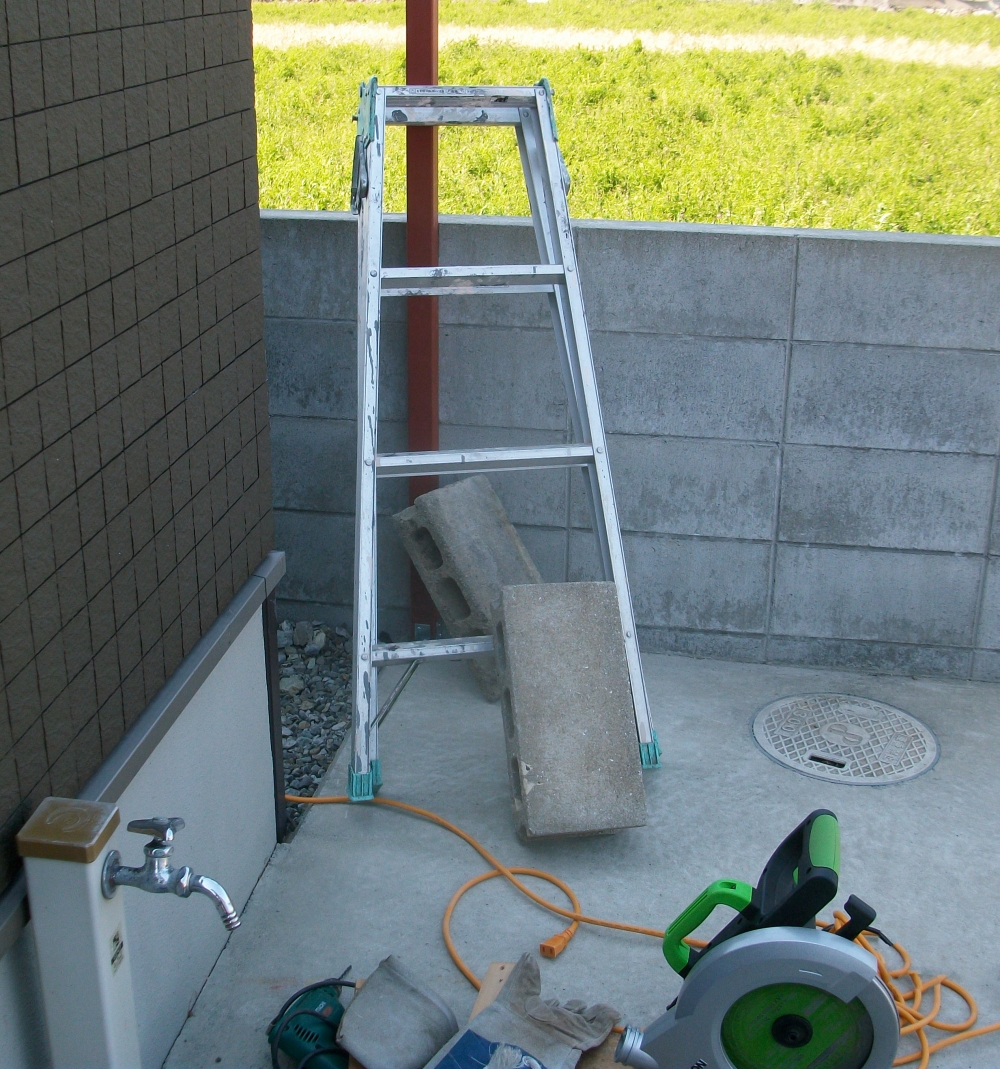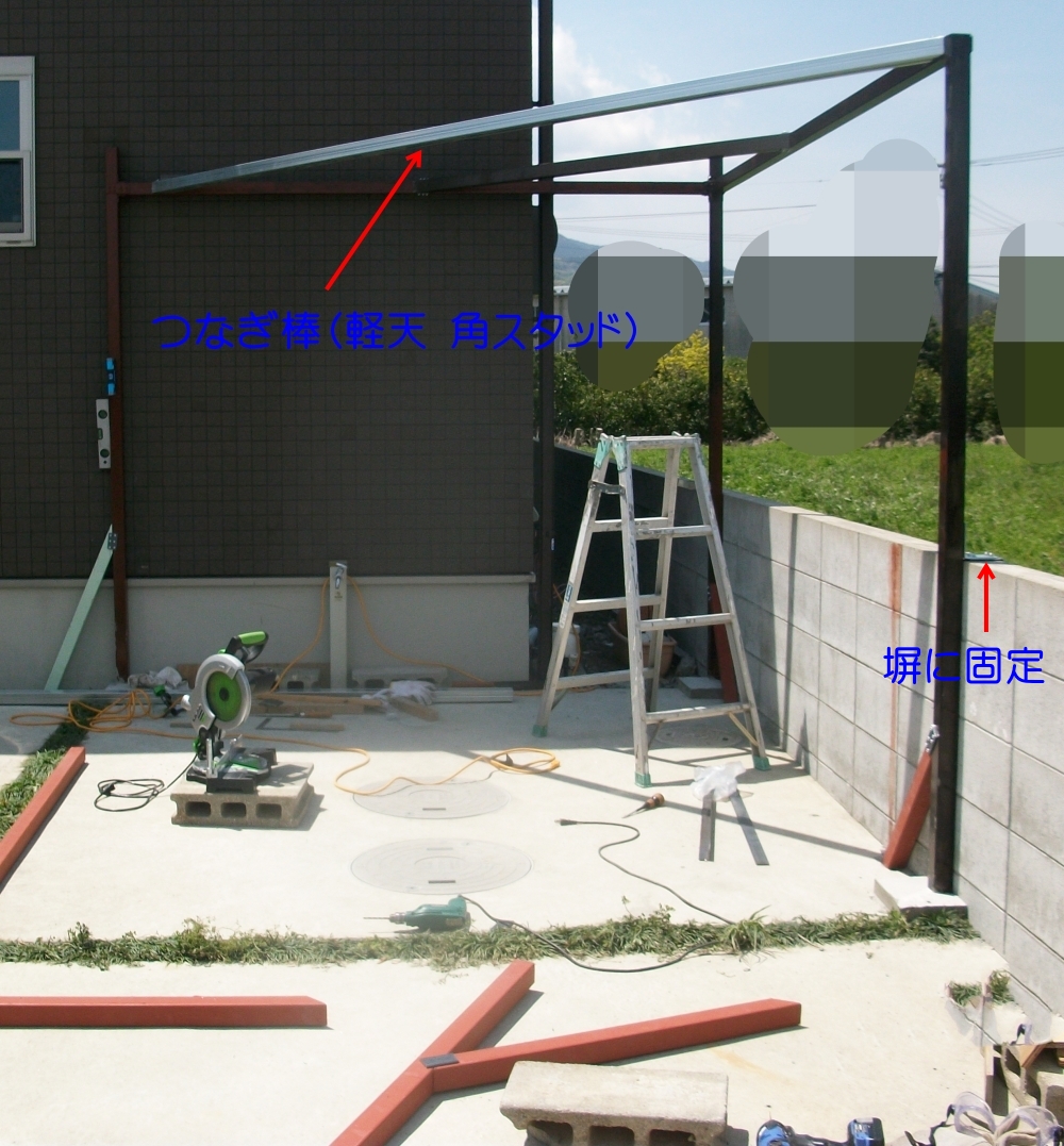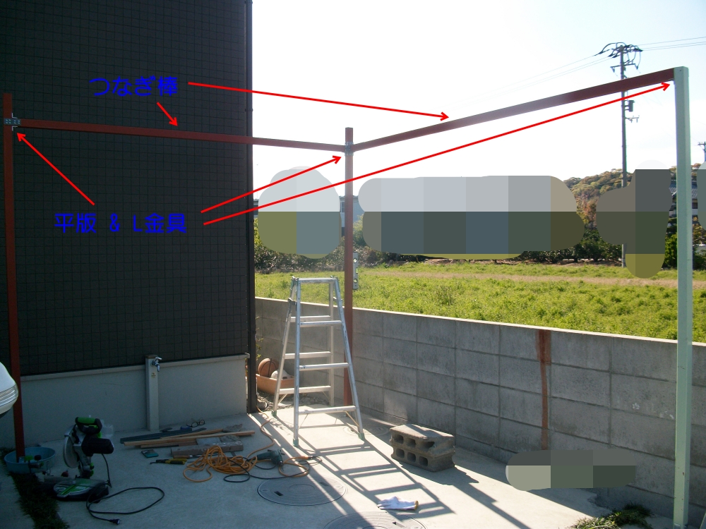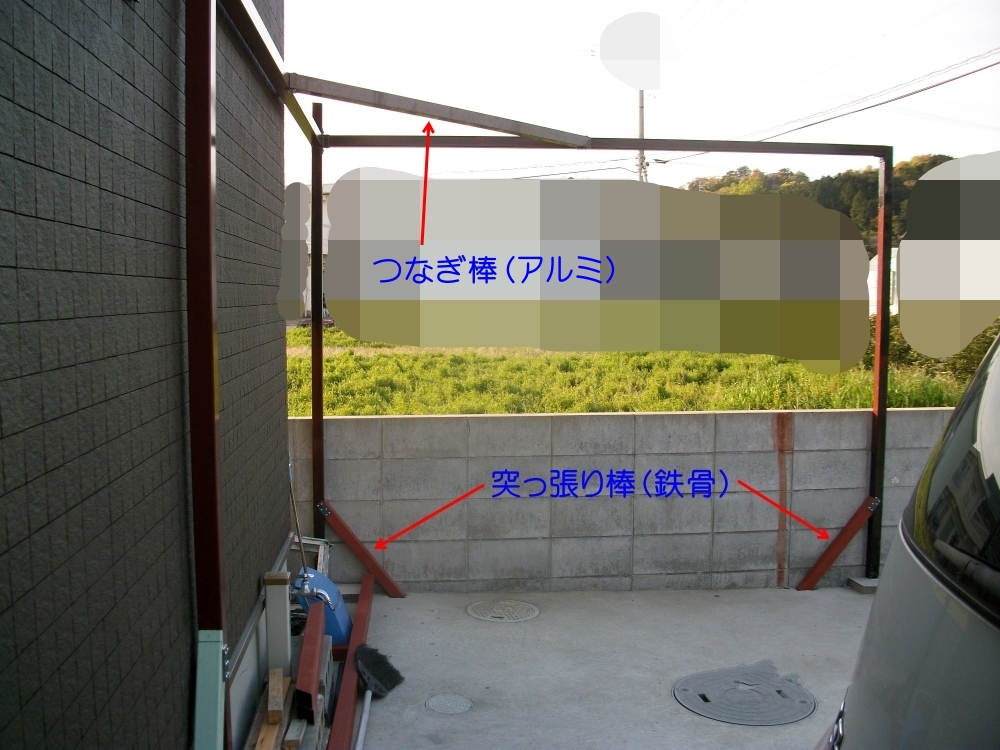 (※ 実は、このつなぎ棒(アルミ)はテラス用に使っていた、廃材を利用!