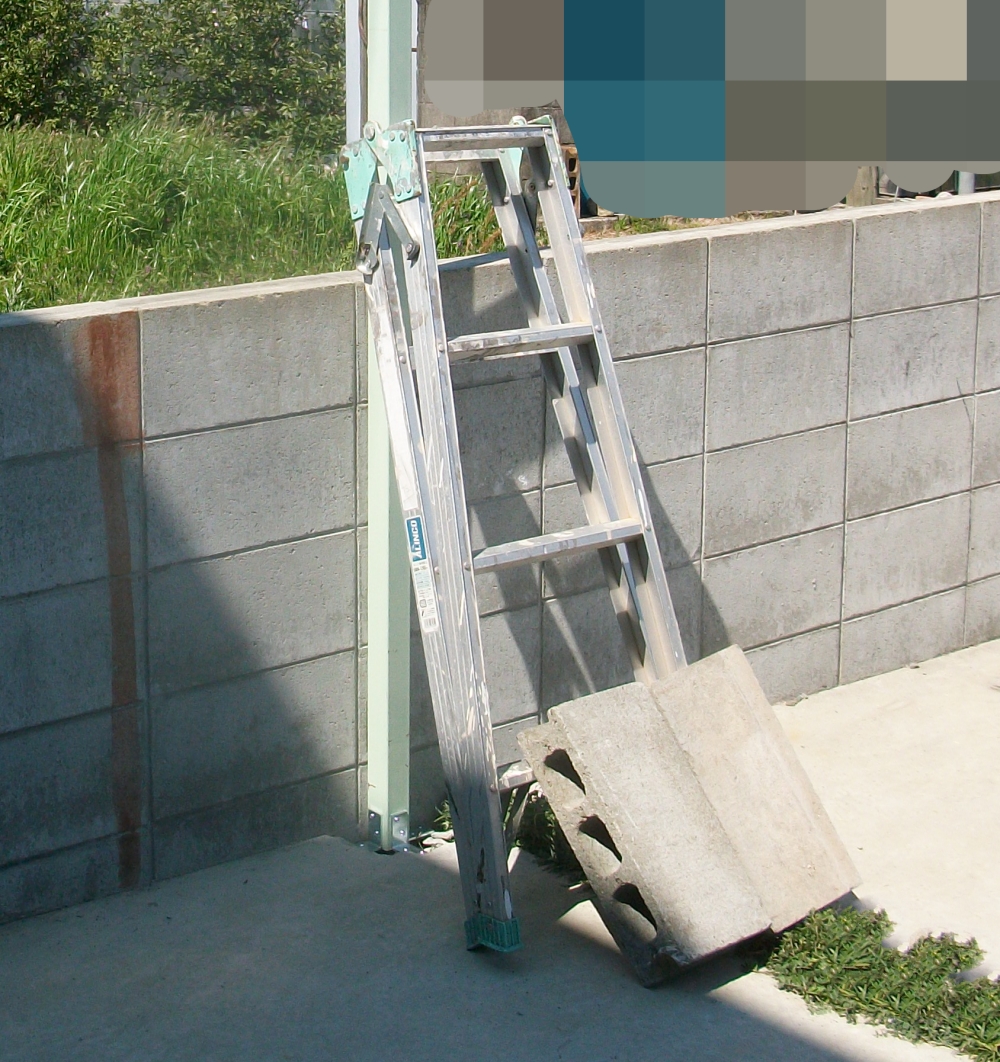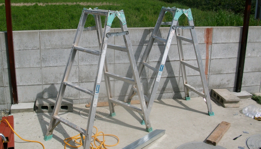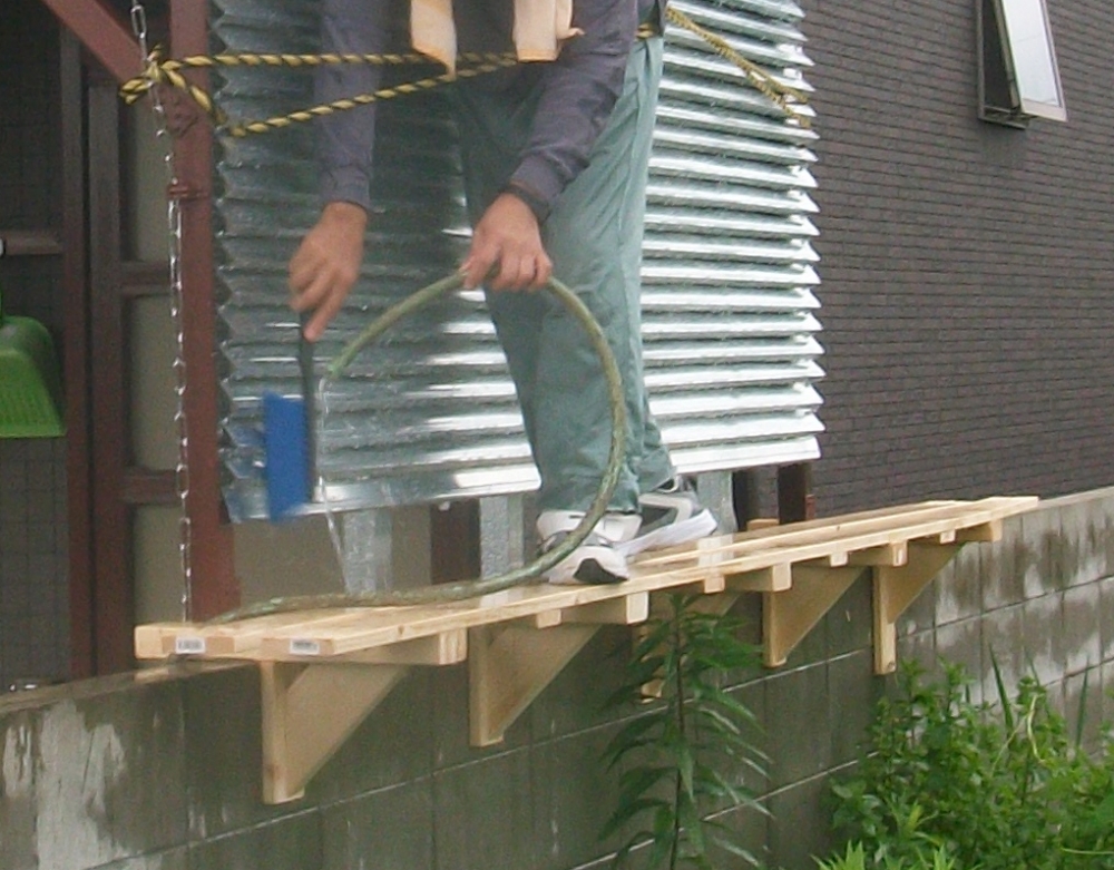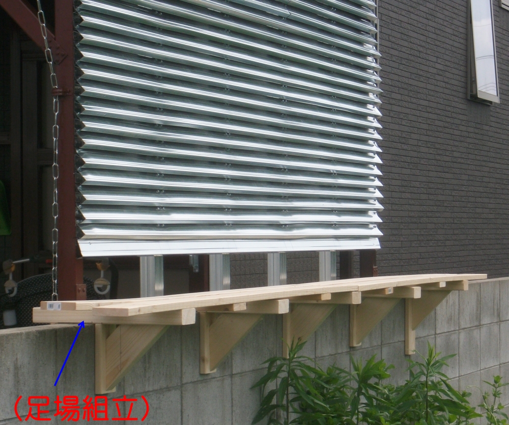 この足場は、着脱可能で5ケの渡し板置台を作ります。(写真の様に作ります)