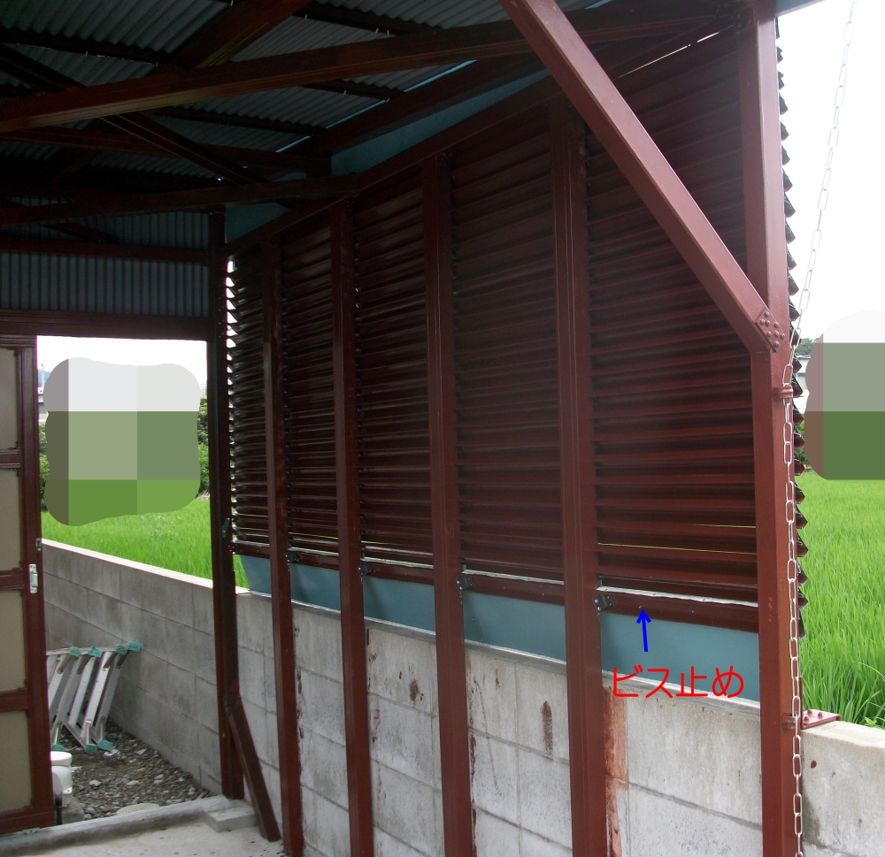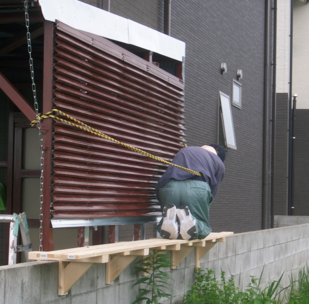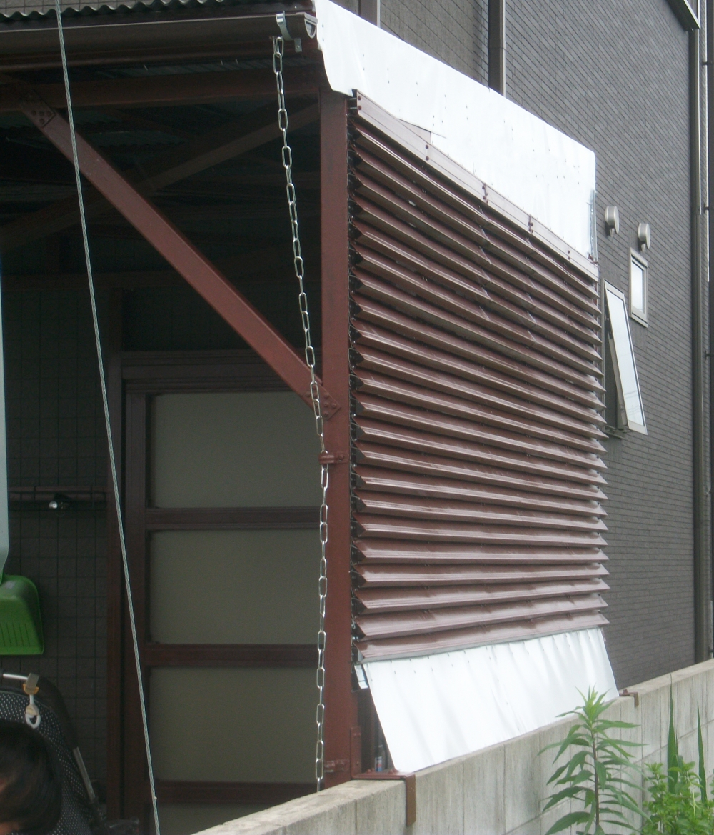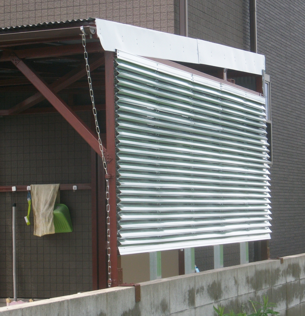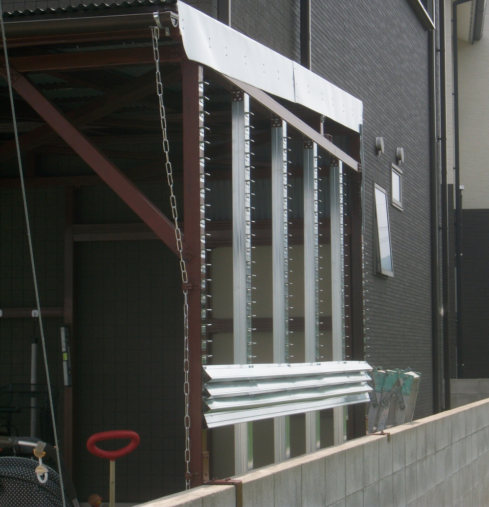 ルーバーの上の側面に、ブリキ版を張り(目隠し)
