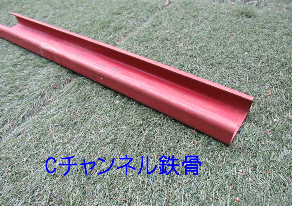 天井部分に、三角形に張ったつなぎ棒の上に 鉄骨Cチャンネル2本を張り、L金具、ビスで